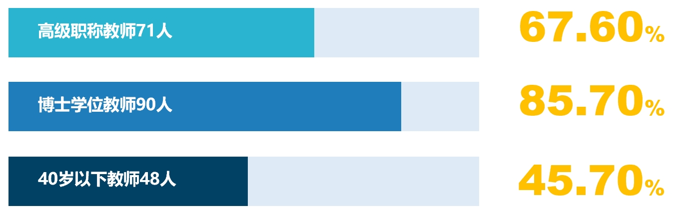 自动化学院现有专任教师105人,其中兼职博导6人,硕导49人;正高级21人、副高级50人。高级职称占专任教师人数的67.6%;博士学位教师90人,占专任教师人数的85.7%;具有一年海外经历教师22人,45岁以下教师占比72.4%。