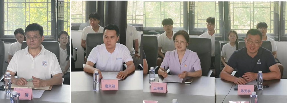 共青团河间市委书记刘宇辰、科协主席杨学军、经济开发区管委会副主任饶东华、青年企业家商会秘书长葛付伟、北京信息科技大学自动化学院副院长张涛、北京信息科技大学自动化学院党委副书记陈天宇、北京信息科技大学自动化学院辅导员王率滨、实践团队学生代表唐文迪在会上发言,共同探讨京津冀协同发展背景下北京高校赋能河北县域发展的实践与探索。