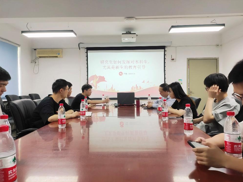 在座谈会中,2203班组织委员张治勇首先提出,研究生可以在专业领域引领本科生。张同学的观点凸显了研究生的学术优势,将专业知识的积累和研究经验分享给本科生,有力于推动本科生的专业学习和研究发展;2202班入党积极分子赵鑫同学进一步提出,研究生可以从专业引领、就业情况、参加比赛等方面给予本科生帮助,并对于思想引领的重要性进行了强调,他鼓励本科生劳逸结合,保持稳定、乐观的心态;研2204班党支书陈健的发言则围绕着党支部的工作展开,他阐述了入党流程的重要性,向本科生介绍入党流程可以使本科生对党的组织结构和入党程序有了更深入的了解。