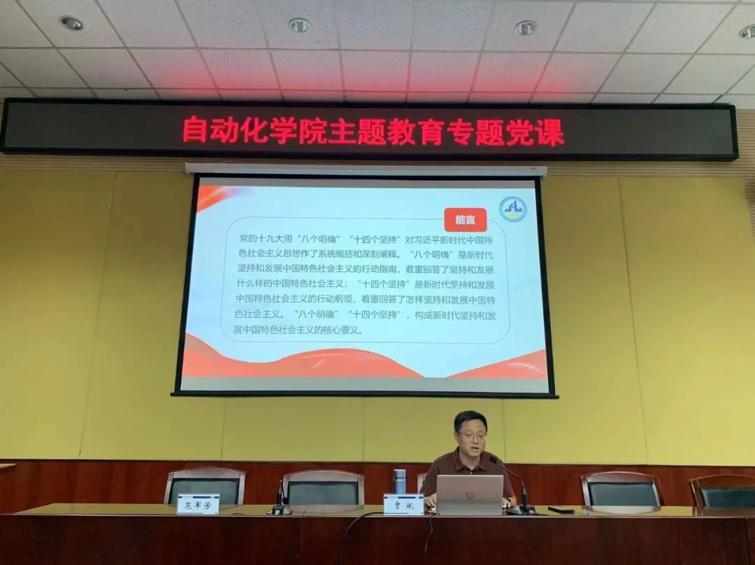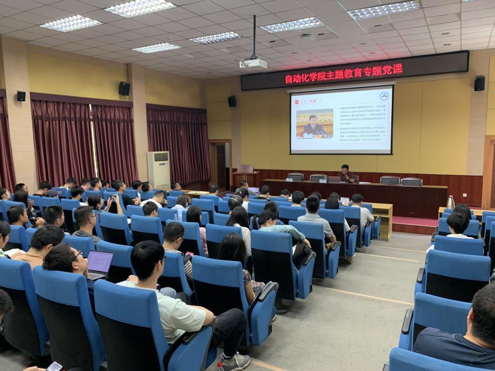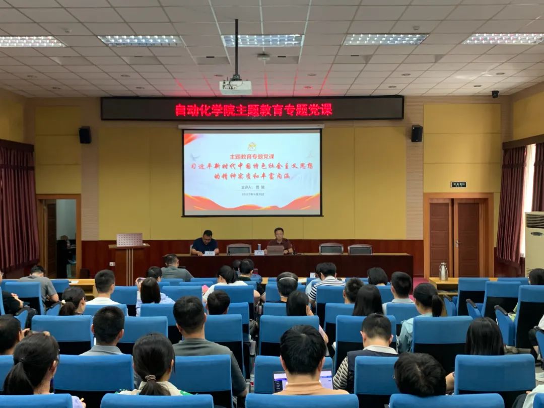 为深入学习习近平新时代中国特色社会主义思想,贯彻落实主题教育“学思想、强党性、重实践、建新功”的总要求,6月9日下午,自动化学院党委书记贾斌以《习近平新时代中国特色社会主义思想的精神实质和丰富内涵》为题,为学院全体教职工及学生党员骨干讲授专题党课。党课由学院党委副书记兼副院长范军芳主持。