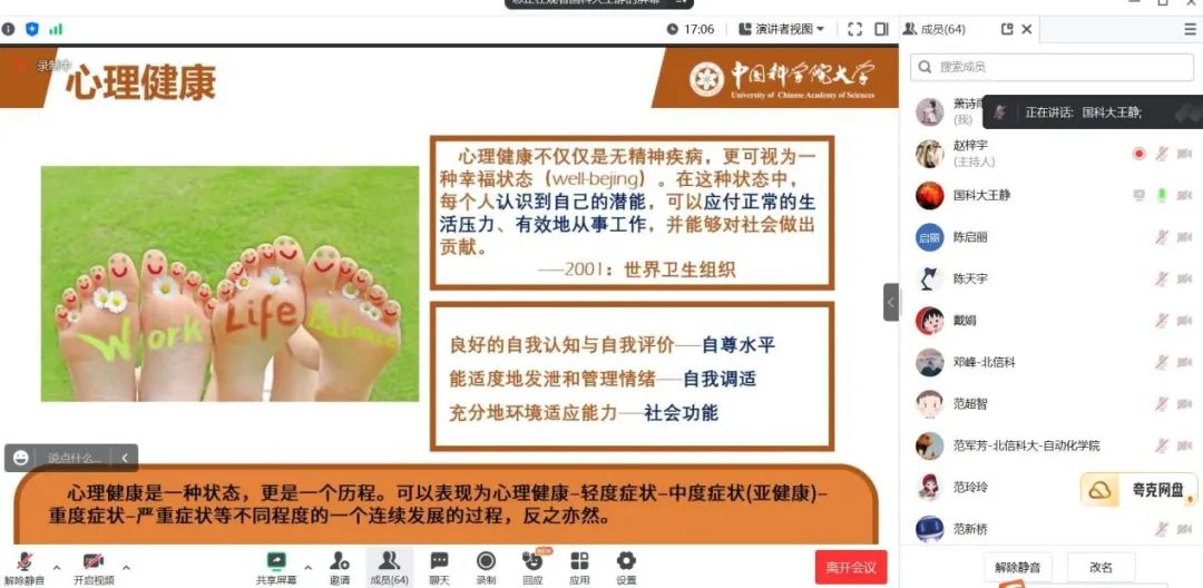 窗外寒风呼啸,一片肃杀的冬季里,自动化学院里却是暖意融融。学院的老师们正在认真聆听学院专门为老师们安排的心理健康辅导讲座。为了缓解老师们来自工作、社会生活中各方面的焦虑和压力,提升大家的心理健康素质,学院邀请了国家二级心理咨询师王静和北京心理健康促进协会秘书长、心理咨询专家、郭聪荣,为学院全体教职工开展了线上心理健康讲座。多位教师表示感触良多,不仅提升了自己对心理健康的认识、收获到了很多工作、生活中的启发,也得到了行动上的指导意见。