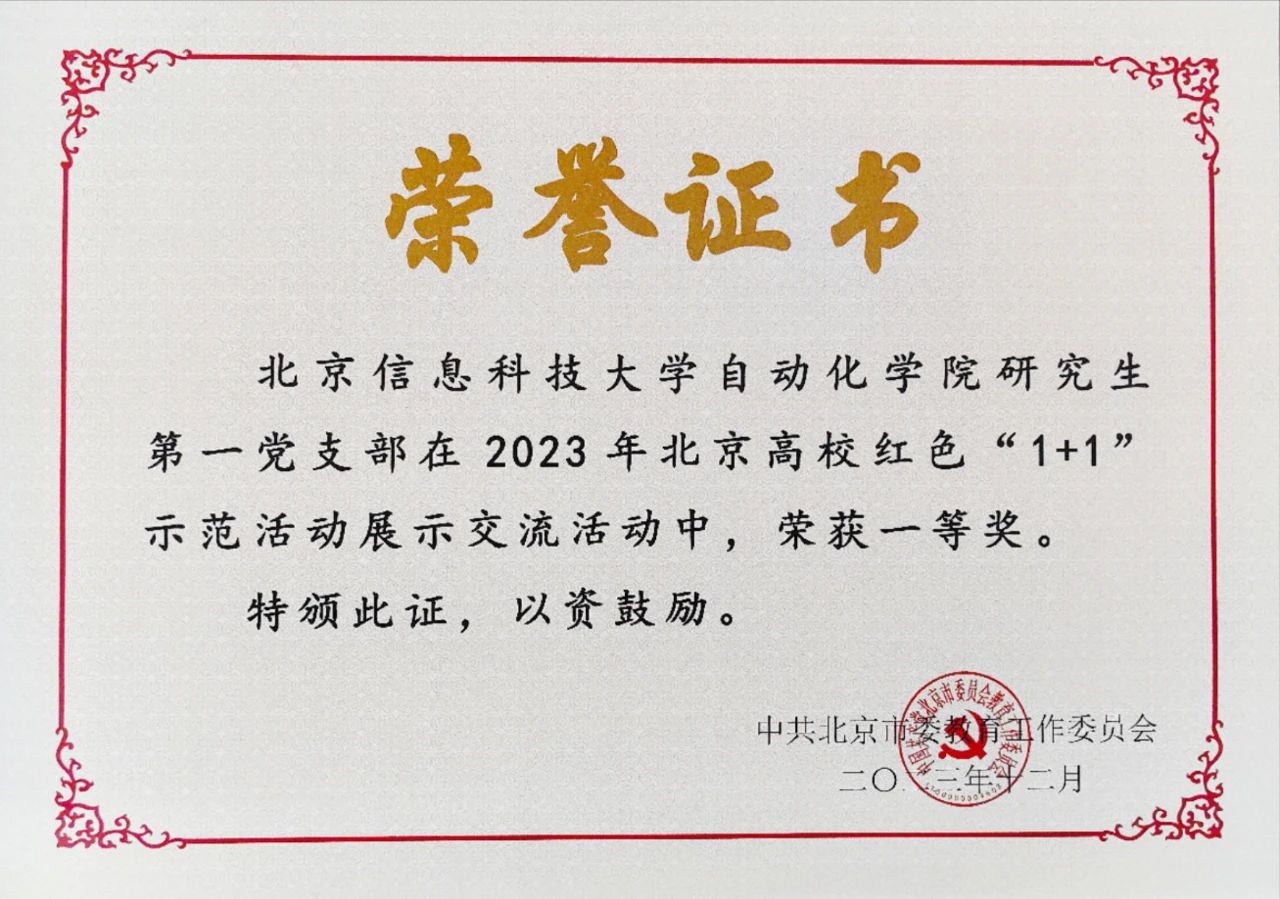 12月28日,2023年北京高校红色“1+1”示范活动展示评选圆满结束。经学校推荐、现场展示、专家评审等环节,学院研究生第一党支部从1615个党支部中脱颖而出,荣获一等奖。