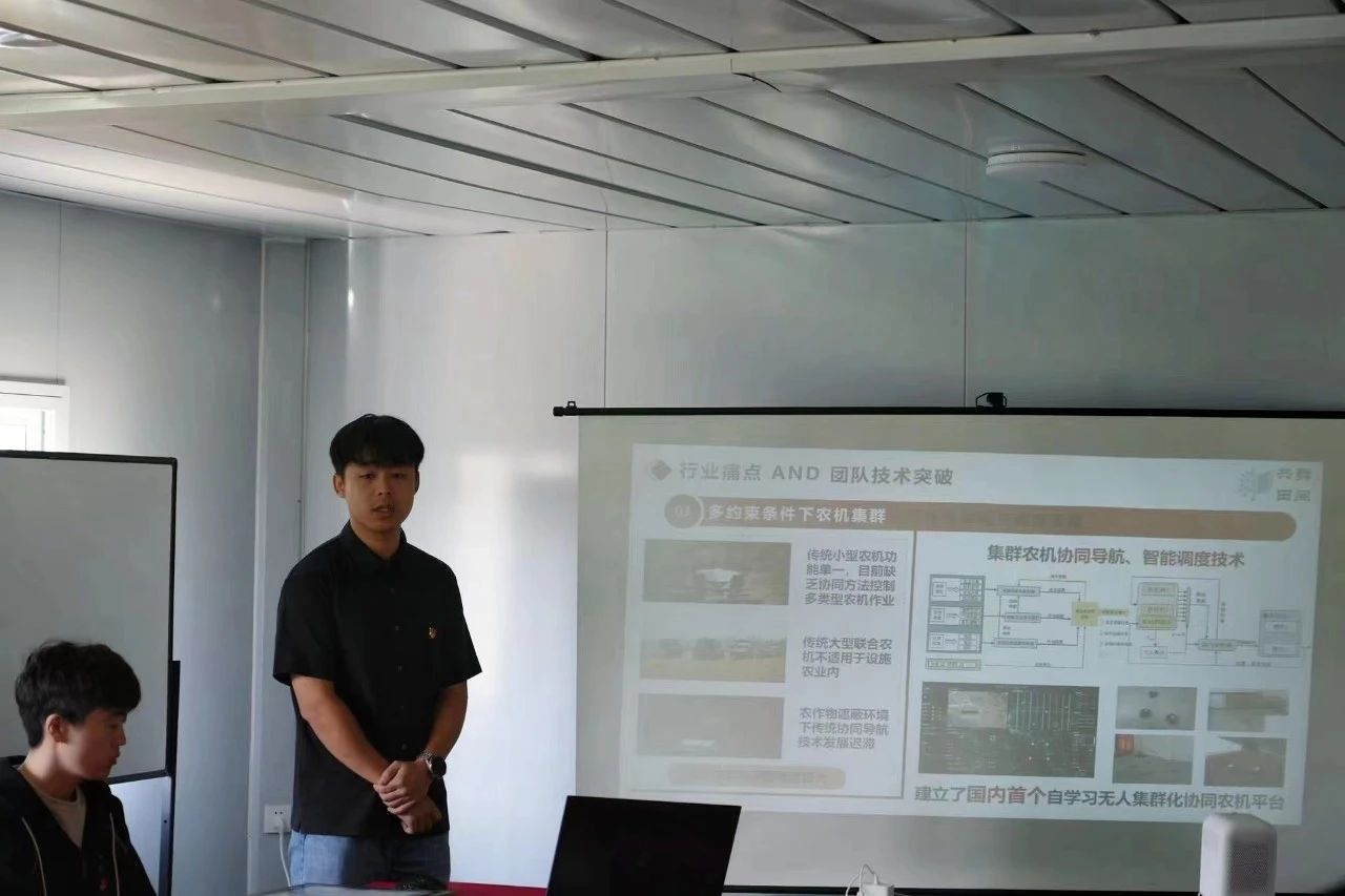 党的二十大报告中强调要发展设施农业。支部党员都是控制科学与工程专业的学生,在实地调研中发现提辖庄村的难点问题在于劳动力短缺,农业装备生产效率低等。通过现场踏勘和实验室反复探索,双方合力搭建了一个功能齐全的智慧大棚,展现出“1+1>2”的效果。进行了温湿度传感器、土壤酸碱度传感器等温室大棚设施农业的数字化设备安装及调试,实现农情数据实时监测;开发研制小型集群式智慧无人农机,减轻农户负担。搭建国内首个自学习农情信息云平台,灵活调整农作物种植计划。以上技术突破将推广到更多乡村,推动科技创新和乡村振兴深度融合。