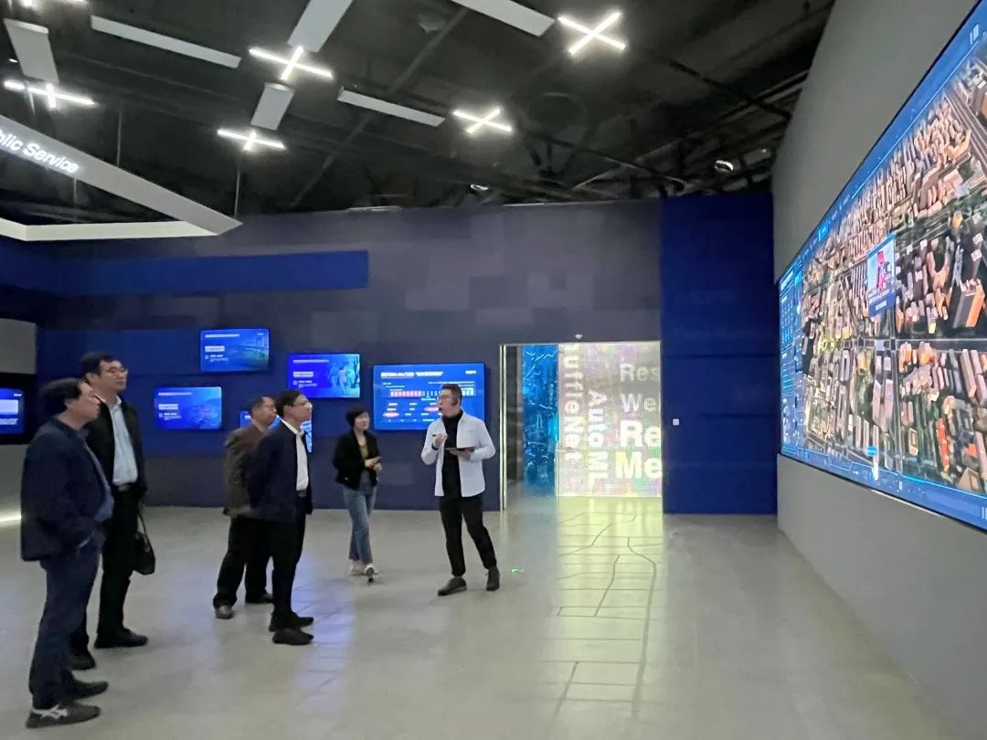 学院领导班子成员跟随讲解员依次参观了“图像感知”、“智能校园”、“智能物流”、“智能城市”等展厅,通过图文展示、实物模型、场景应用、全息投影等沉浸式体验形式,深入了解了旷视科技有限公司的人工智能技术、产品的解决方案、产品的赋能行业等。
