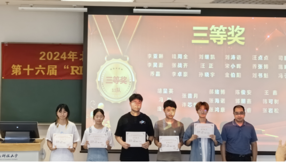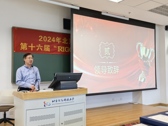第十六届北京信息科技大学“RIGOL杯”电子设计竞赛由我校教务处主办,自动化学院电子信息与控制国家级实验教学示范中心承办,于2024年4月9日启动,共有5个学院的34组参赛队成功报名。经过综合测评,评选出了特等奖1组、一等奖3组、二等奖10组、三等奖11组、成功参赛奖8组。 2024年5月8日下午在太行路校区举办颁奖典礼,由信控中心李芳老师主持,教务处副处长吴迎年出席颁奖典礼。
