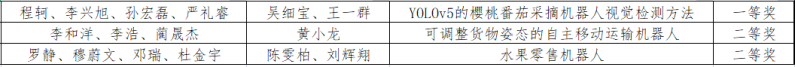 2022年11月19日,华北五省(市、自治区)大学生机器人大赛以及北京市大学生机器人大赛在线上举行,华北五省(市、自治区)大学生机器人大赛是由北京、天津、河北、山西、内蒙古教委(教育厅)共同举办的综合性大学生机器人大赛。“YOLOv5的樱桃番茄采摘机器人视觉检测方法”作品受到大赛评审专家的一致认可和高度称赞,取得了一等奖的成绩,展现了在机器视觉和机器人领域突出的创新创业实践能力。