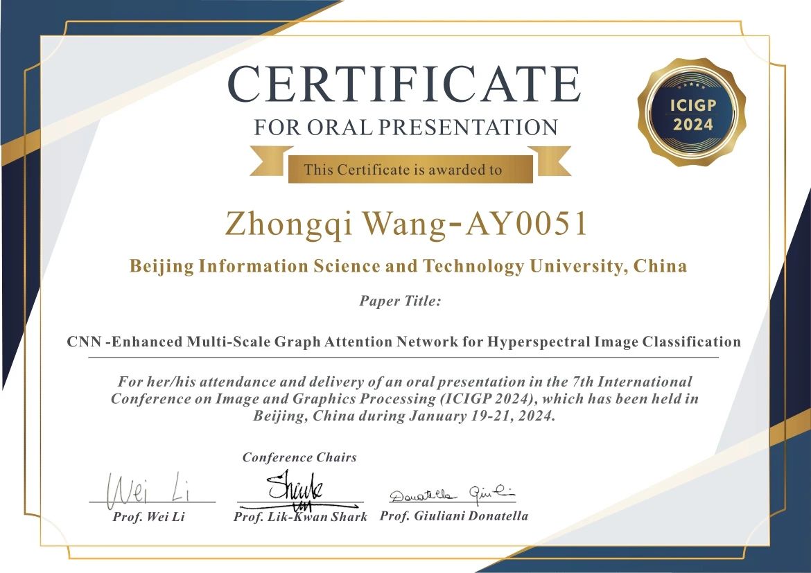 人工智能勤信实验班学生在IEEE ICIGP做学术报告