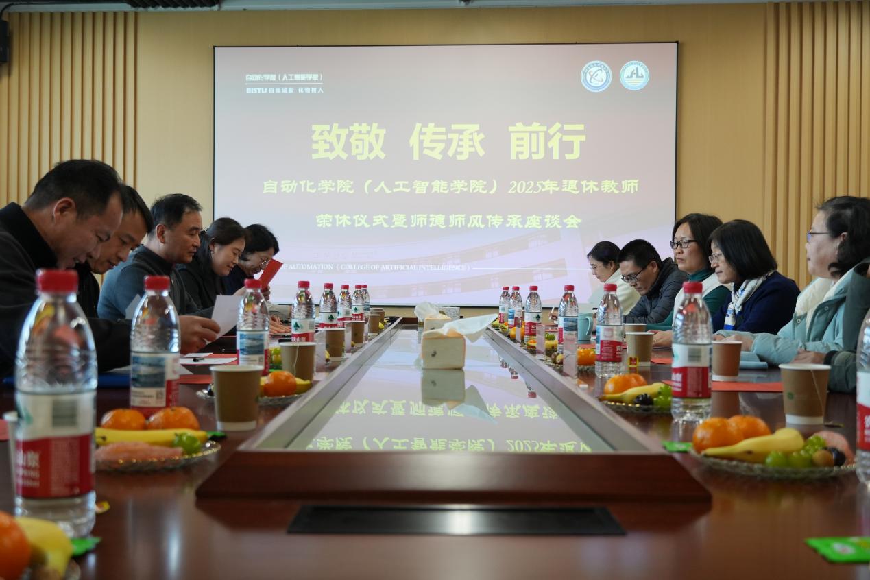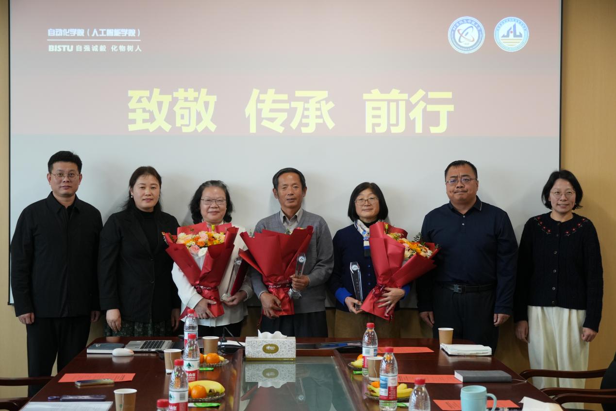 12月10日下午,自动化学院(人工智能学院)在沙河校区工学楼C座406会议室隆重举行“致敬 传承 前行”2025年退休教师荣休仪式暨师德师风传承座谈会。校党委副书记、校工会主席于世洁,校工会常务副主席韩俊彦,离退休党委书记、离退处处长龚汉明出席活动。活动由学院党委书记、部门工会主席贺芳主持。