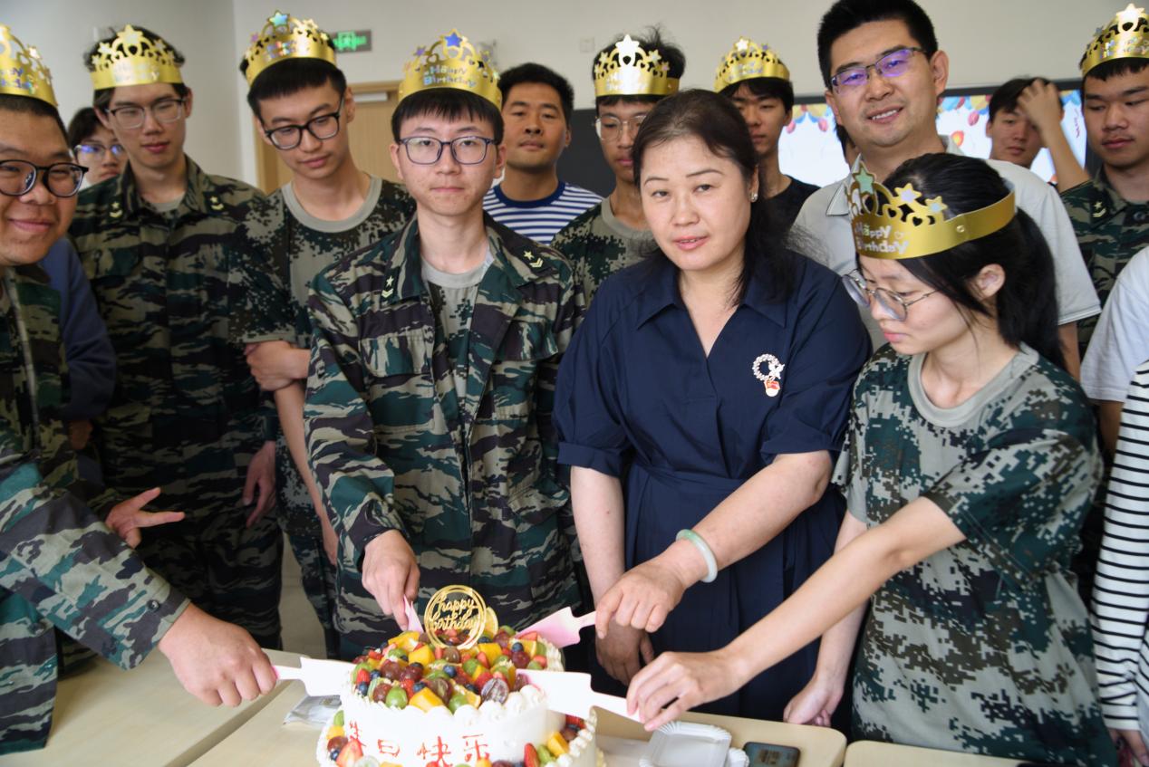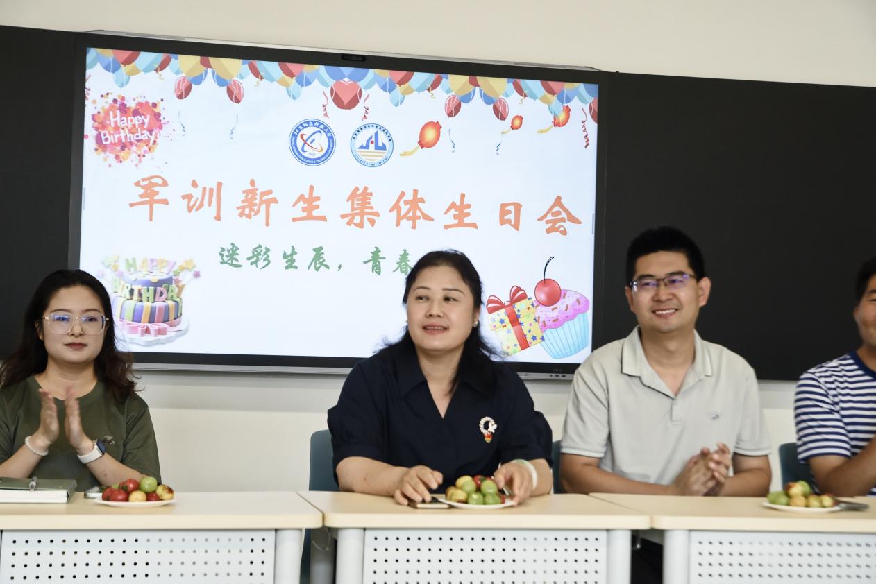 最后,贺芳向23位寿星送上诚挚的生日祝福,同时对同学们的军训表现给予肯定。她指出,军训是大学生涯中不可或缺的重要一课,不仅能锻炼大家的身体素质,更能培养团队协作精神与责任担当意识。贺芳强调,学院始终将同学们的成长放在心上,无论是学习科研还是日常生活,都会全力为大家提供支持与关怀。她希望同学们能在军训中收获成长与蜕变,在集体中学会包容与合作,以更饱满的热情、更昂扬的姿态迎接接下来的大学生活。她的话语温暖有力,既传递出学院对同学们的深切关怀,也为在场所有人注入了前行的动力。