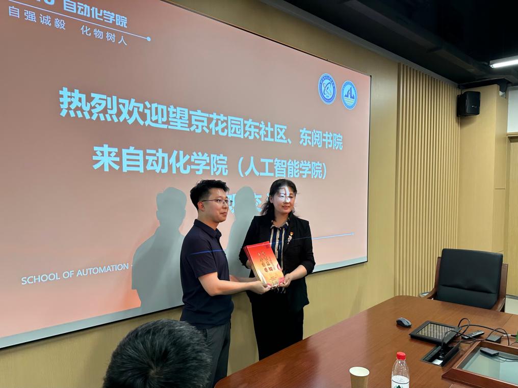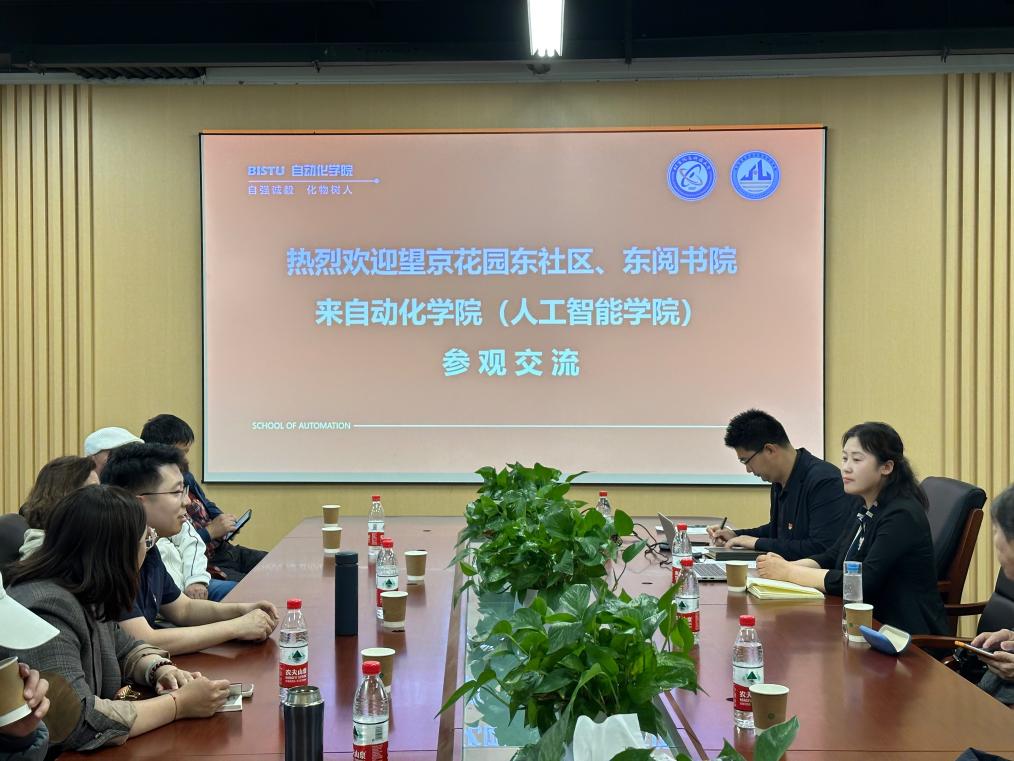 芳菲四月,春风和煦、暖意融融。2025年4月25日,望京花园东社区党委书记全权、东湖街道党群办科长徐子雯、东阅书院社长董蔚建带领24人代表团,到访北京信息科技大学自动化学院(人工智能学院)。学校离退休工作处副处长丁娟、学院党委书记贺芳、党委副书记甘长来以及青年教师代表对社区到访人员表示热烈欢迎,并精心组织了参观座谈活动。本次会议由甘长来主持。