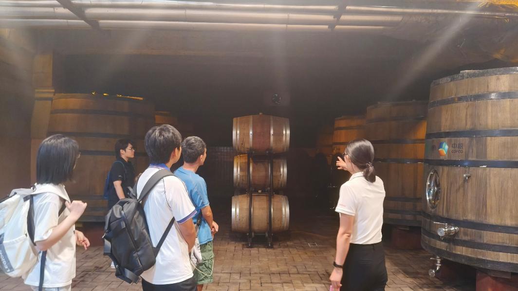 最后,实践团走进长城葡萄酒有限公司的核心酿造车间。车间内排列着数十个大型发酵罐,罐身布满了温度传感器、压力和数据传输线,墙面的智能监控屏上实时显示着每一个发酵罐的状态。讲解员介绍:“这些发酵罐采用了自动化温度控制系统,通过传感器监测罐内温度,自动启动冷却或加热装置,确保红葡萄酒发酵保持在25-30℃的最佳范围——以前靠人工调节,误差大,现在误差能控制在±0.5℃。”队员们凑上前,盯着透明的观察窗,看着酒液从浑浊逐渐变得清澈。“以前酿酒靠经验,比如‘摸发酵罐温度’‘看酒液浑浊度’,现在靠这些数据。”酿酒师拿着平板电脑说:“这组自动化设备能把发酵过程的误差控制在±1℃,保证每一批酒的品质一致。”