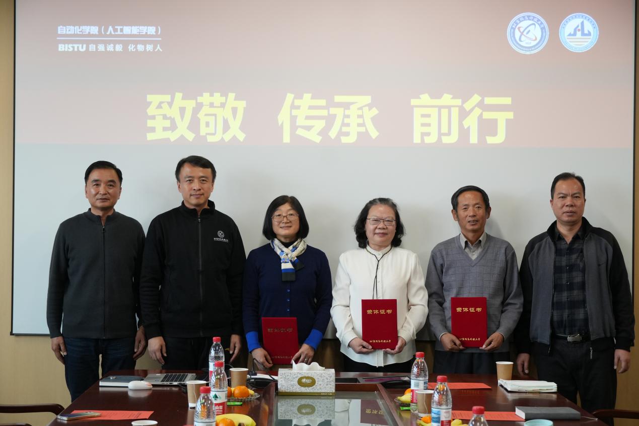 12月10日下午,自动化学院(人工智能学院)在沙河校区工学楼C座406会议室隆重举行“致敬 传承 前行”2025年退休教师荣休仪式暨师德师风传承座谈会。校党委副书记、校工会主席于世洁,校工会常务副主席韩俊彦,离退休党委书记、离退处处长龚汉明出席活动。活动由学院党委书记、部门工会主席贺芳主持。