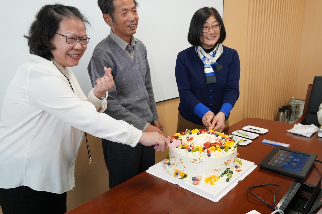 仪式最后,于世洁、韩俊彦、龚汉明为退休教师颁发了荣休证书;学院领导班子为退休教师颁发了学院“立德树人”奖杯并献花。全体与会人员合影留念,并共同分享“感恩有您 荣休快乐”主题蛋糕,仪式在温馨欢快的气氛中圆满结束。