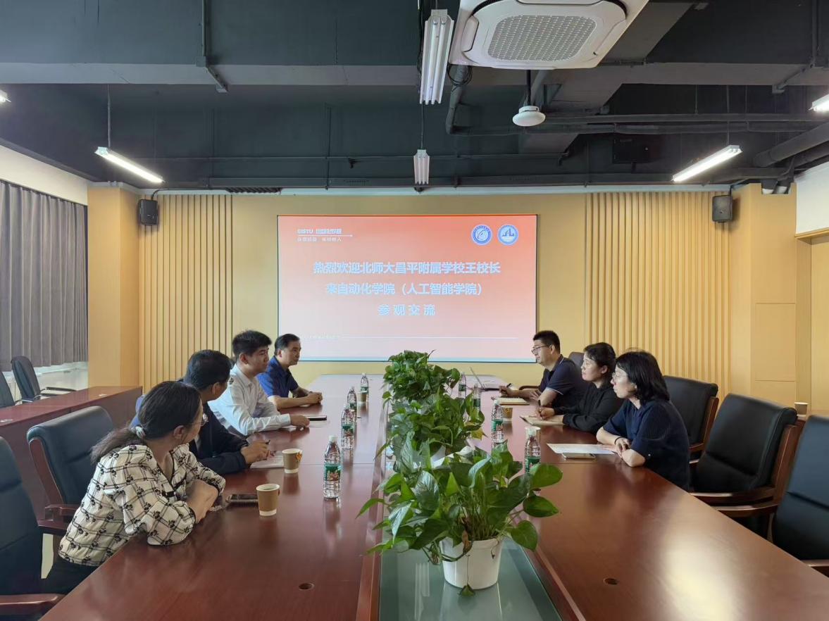 5月15日下午,北京师范大学昌平附属学校党委书记、校长王鹏飞来自动化学院(人工智能学院)参观交流,王鹏飞先后参观了自动化学院(人工智能学院)多智能体协同控制实验室、罗克韦尔协同创新实验室、智能机器人实验室,并认真观摩了学生科创成果展示,详细了解了学院科技实践情况。