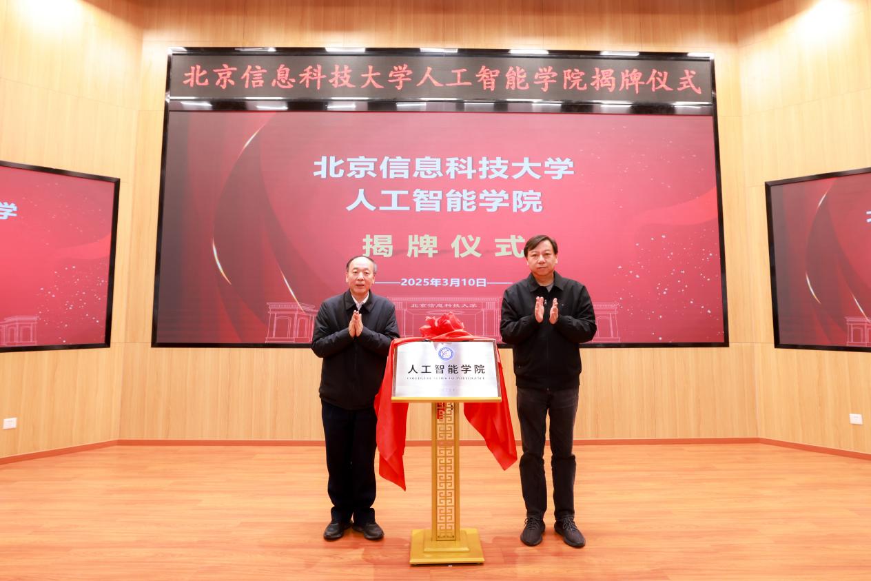 大会举行隆重的揭牌仪式,赵春江院士、郭福校长共同为北京信息科技大学人工智能学院揭牌,这标志着我校在人工智能领域的研究与应用迈入了崭新阶段,也为推动首都人工智能产业创新发展和教育科技进步注入了新的活力与强大动力。