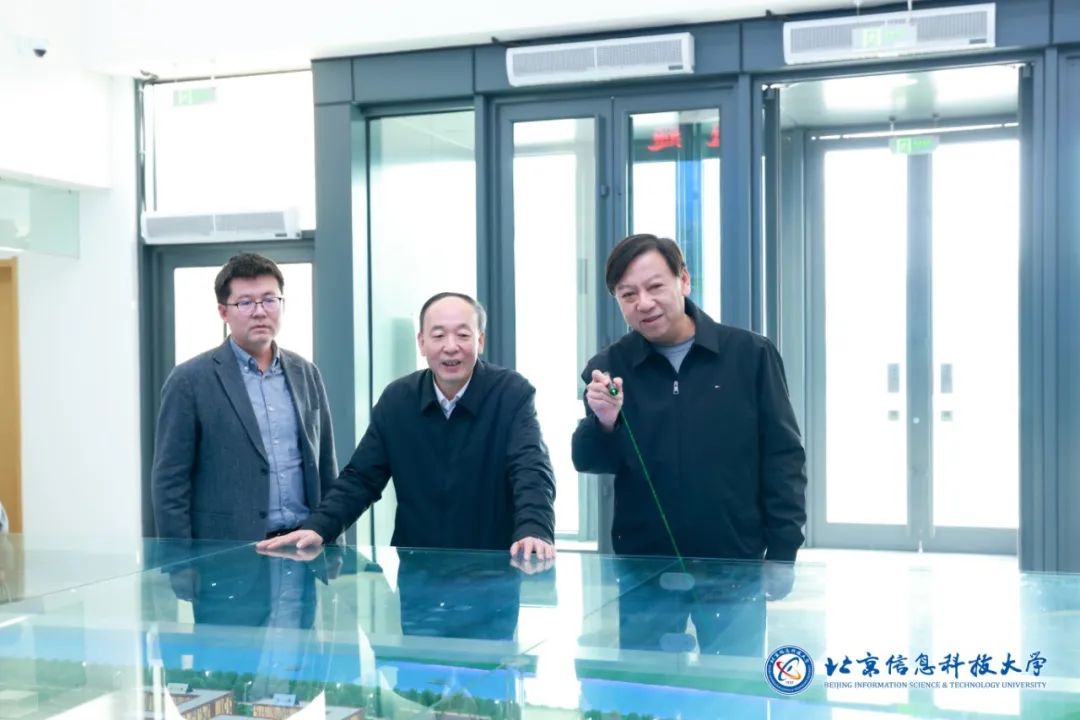 学术报告后,赵春江院士参观了学校科研成果展,了解了学校科研成果转化情况,并前往自动化学院(人工智能学院)与相关负责人围绕人工智能学院建设有关事宜进行研讨。活动前,赵春江院士还观看了学校沙河校区沙盘,详细了解了学校新校区建设规划情况。