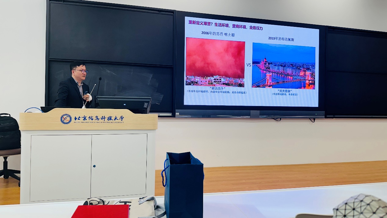 副校长张健代表学校致欢迎辞,强调“大模型技术正成为重组全球要素资源、重塑全球经济结构的关键变量”,一定要“锚定人工智能战略高地”,并指出我校作为首都高校始终将人工智能领域的人才培养与产业需求深度绑定。他高度评价王晓滨既是技术前沿的探索者,也是产教协同的践行者,期待通过此次报告推动校企合作迈向新高度。