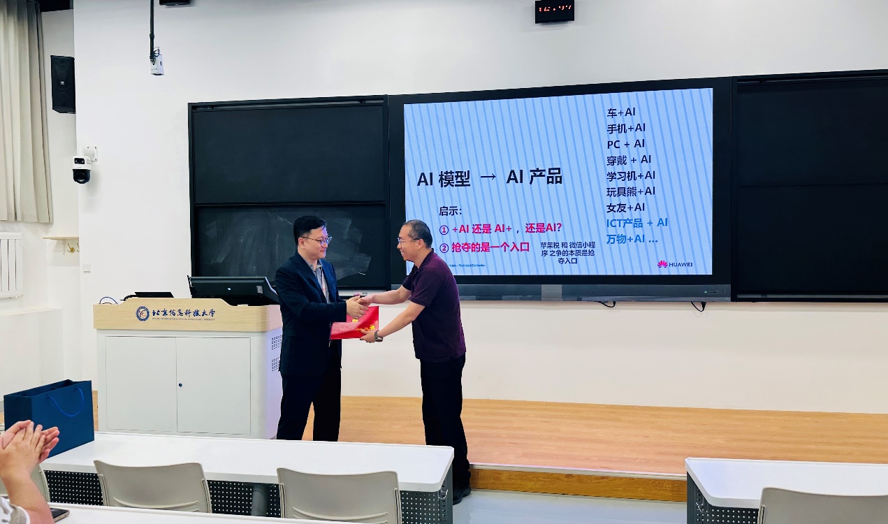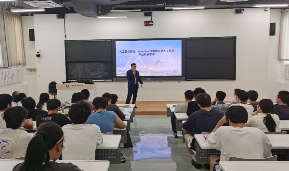 2025年5月15日下午,华为技术有限公司算力行业发展首席架构师、ICT产品与解决方案专家委员会常任委员、华为大学高级讲师王晓滨应邀为包括自动化学院(人工智能学院)、计算机学院、信通学院近200名师生带来主题为“人工智能基础、Deepseek技术特征及人工智能产业发展思考”的前沿学术报告,与师生们共同探讨、分享人工智能技术前沿与产业实践经验,本次报告由自动化学院副院长刘宁主持。