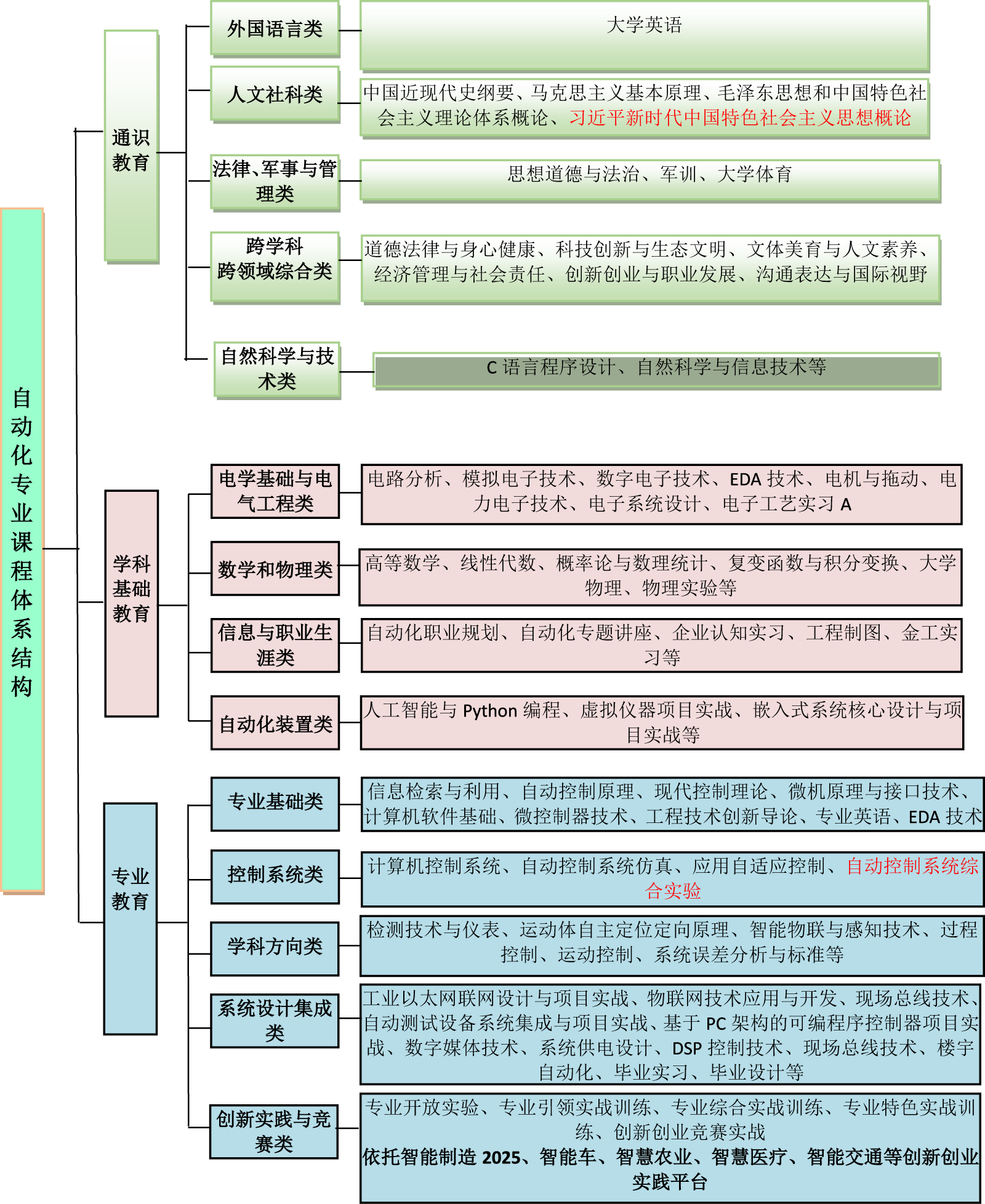 本专业学生除学习公共基础课程外,根据教育部自动化专业规定,参考相关专业认证、专业评估要求,所设置的专业核心课为:自动控制原理、现代控制理论、微控制器技术、电路原理、模拟电子技术、数字电子技术、微机原理与接口技术、计算机控制系统、电力电子技术、检测技术与仪表、电机与拖动、自动控制系统仿真、运动控制系统和过程控制、智能物联与感知技术、工业以太网联网设计与项目实战、物联网技术应用与开发、现场总线技术、自动测试设备系统集成与项目实战、基于PC架构的可编程序控制器项目实战等。