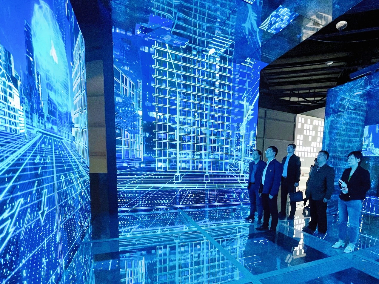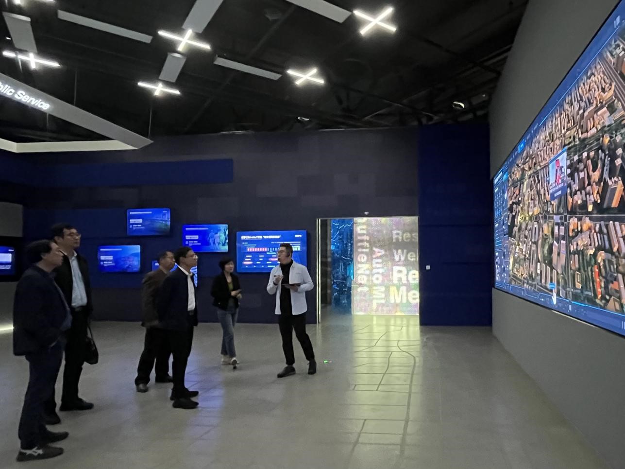 学院领导班子成员跟随讲解员依次参观了“图像感知”、“智能校园”、“智能物流”、“智能城市”等展厅,通过图文展示、实物模型、场景应用、全息投影等沉浸式体验形式,深入了解了旷视科技有限公司的人工智能技术、产品的解决方案、产品的赋能行业等。